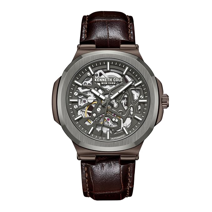 Kenneth Cole Automatic Grey Dial with Brown Leather Strap Analog Watch for Men