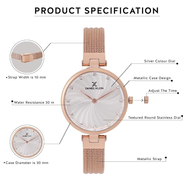 - Band Color: Rose Gold, Band Material: Stainless Steel