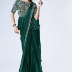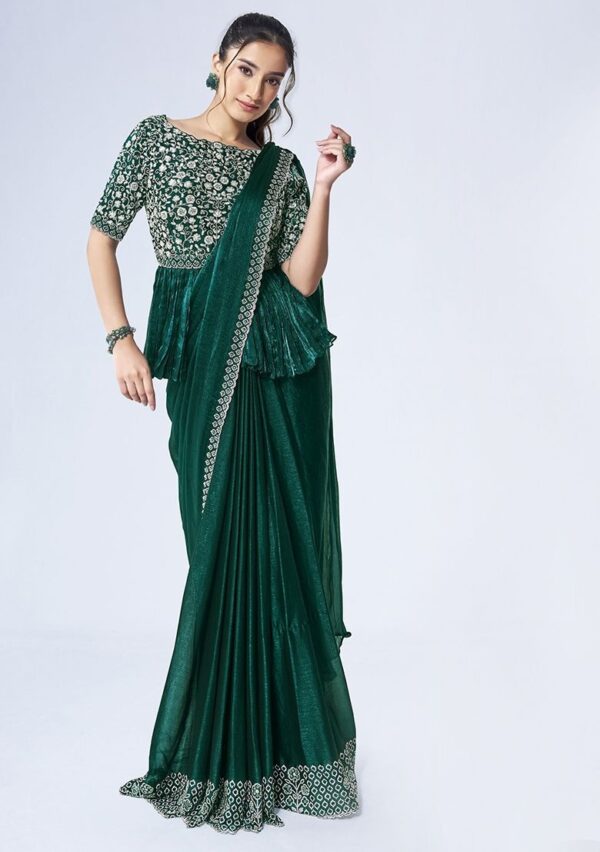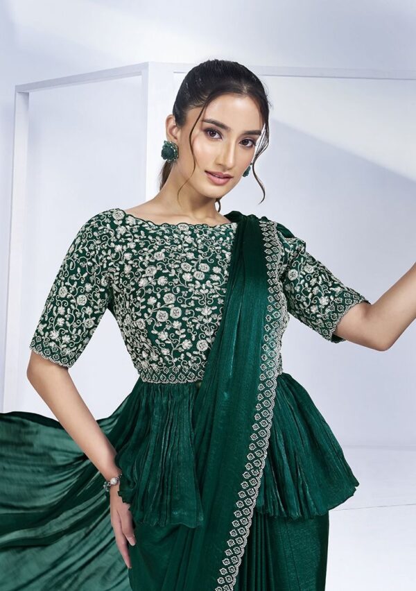 Green Hand Embroidered Shimmer Chiffon Saree Set – XSR23845