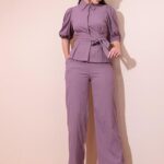 Lilac Crushed Crepe Top And Pants Co-ord Set
