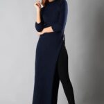 Wow everyone in this stunner of a piece. This perfectly gorgeous navy turtle neck maxi top comes with a daring cut-till-there slit on one side for added sass.