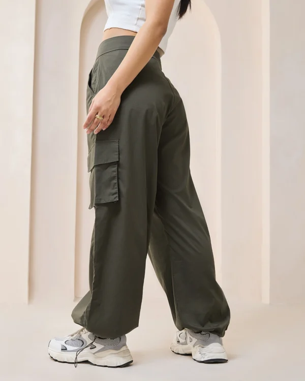 Women’s Green Baggy Oversized Cargo Parachute Pants